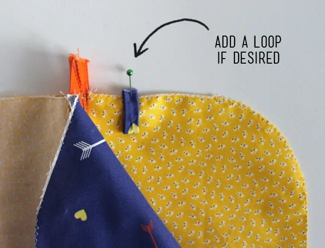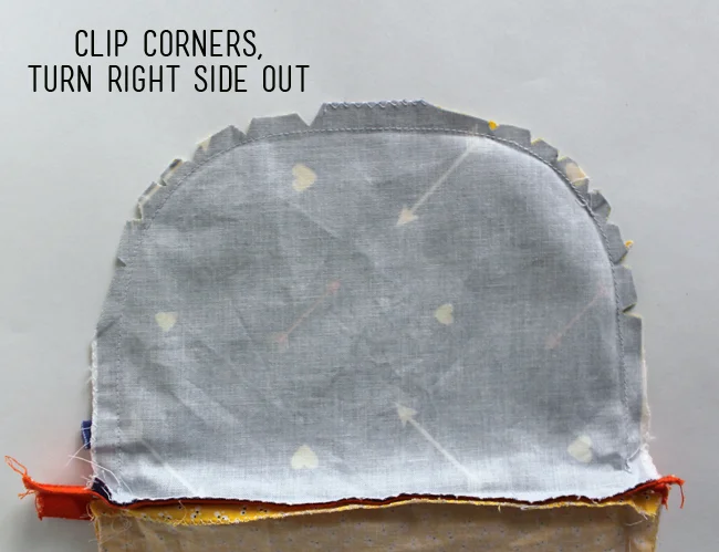 Step 5: Put fabric right sides together matching lining to lining and outside fabric to outside fabric. Pin in place. Using a 1/2 inch seam allowance stitch around each half circle, starting and stopping at the zipper. Make sure to leave an opening on lining side so that you can turn the pouch right side out.